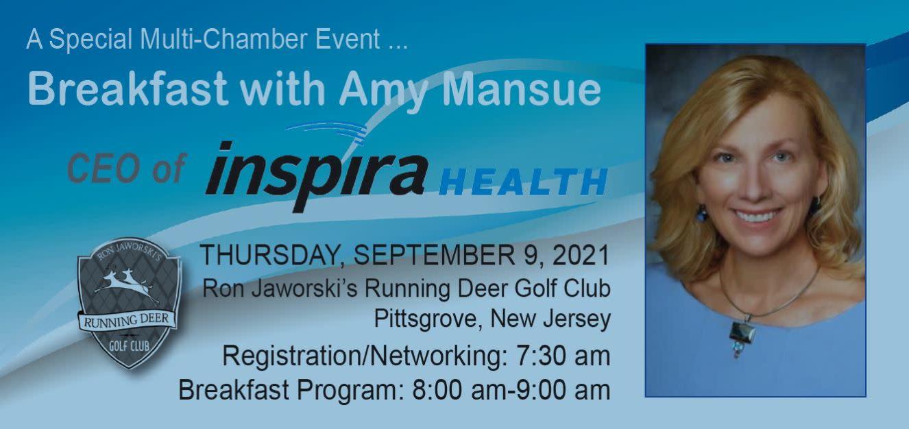 Amy Mansue, CEO of Inspira Health, will report to the community at this special joint meeting of five Chambers of Commerce - Greater Millville, Bridgeton Area, Greater Vineland, Salem County, and Southern New Jersey.