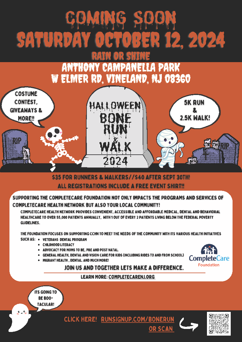 Participating in the Halloween Bone Run also supports an incredible cause - The CompleteCare  Foundation! Your donation will help the Foundation support the work of CompleteCare Health Network in building healthy communities....ONE STEP AT A TIME!!